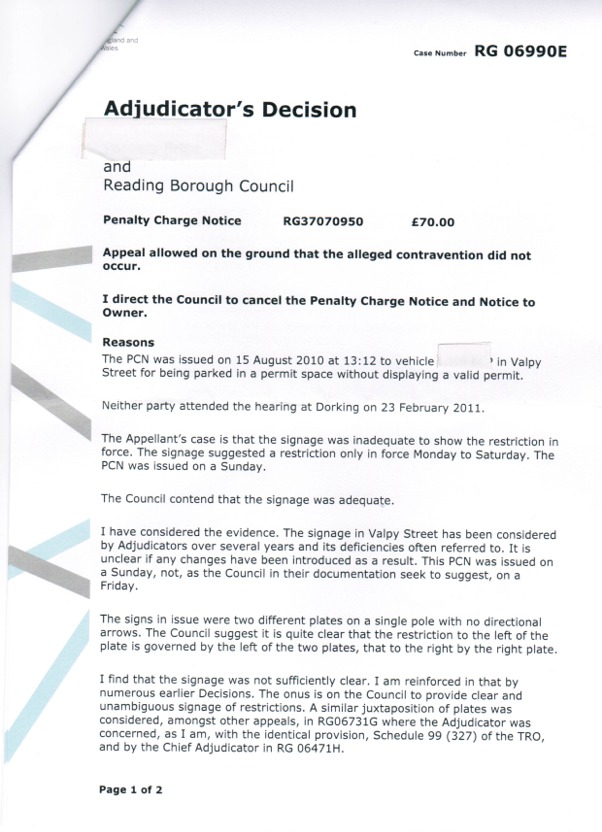 Reading Borough Council Misleading Parking Signage